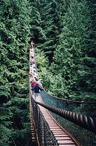 Lynn Valley Park is another beautiful place in the area of Vancouver. Most tourists go to the Capilano suspension bridge and pay lots of money to see the bridge there with lots of tourists on it. The bridge is all they can see there (except of that other tourists). An alternative is to go to the Lynn Canyon Park and visit it's suspension bridge which is just a little bit smaller, but free. And there are very beautiful forests around, too, directly connected to the Mount Seymour Provincial Park. The Lynn Valley is one of the places where you may see bears! ![]() O.K., maybe it wasn't the very best idea
