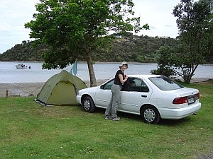 Den ersten Halt haben wir in Whangarei bei den 26 Meter hohen Whangarei Falls gemacht. Der kleine um den Fall herum angelegte Park ist hübsch und ein idealer Ort für ein Mittagessen aus dem Picknick-Korb. Nach dem Essen sind wir sogleich weitergefahren, um noch möglichst früh unser Ziel zu erreichen. In Paihia haben wir zuerst einen Campingplatz gesucht. Das Wetter sah toll aus, und so hofften wir auf zwei trockene Nächte, was sich später als Täuschung herausstellen sollte. Wir haben uns für Smith's Holiday Camp entschieden, weil es direkt am Meer liegt. Der Campingplatz ist aber nicht nur toll gelegen, sonder auch sehr sauber und mit einer Küche gut ausgerüstet. Was wir zu diesem Zeitpunkt noch nicht wissen konnten: Fast alle Campings und auch die Backpacker von Neuseeland, die wir auf unserer Reise antreffen sollten, sind mit Küchen und dem entsprechenden Kochmaterial fürstlich ausgerüstet. Schade nur, dass wir in Auckland noch Gaskartuschen für unsere Gaskocher gekauft hatten, denn die werden wir am Schluss unserer Reise an andere Camper abgeben, ohne sie jemals gebraucht zu haben. |