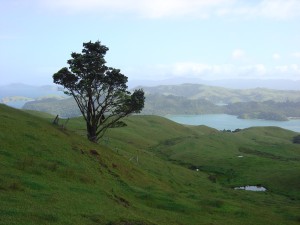 Die Coromandel Halbinsel ist sehr hügelig. Die Hügel sind meistens von Wald überwachsen, die langen Jahre der hemmungslosen Rodungen haben aber überall offensichtliche Spuren hinterlassen. Es gibt grosse Anstrengungen, die ursprünglichen Baumarten wieder anzusiedeln, insbesondere Kauris werden in grossen Mengen gepflanzt. Wir konnten hier aber keine Exemplare wie an der Kauri-Coast finden. Entsprechend dem Terrain wurden auch die Strassen gebaut. Meistens sind sie ziemlich schmal, steigen steil und kurvenreich auf Hügel hinauf und ebenso wieder runter, oder folgen der Küstenlinie in jedem Detail. Man muss sich also als Fahrer sehr anstrengen und auch mit einem automatischen Getriebe unbedingt darauf achten, manuell hinunter zu schalten, um die Bremsen zu schonen. Noch mehr Kurven haben wir nur auf der Strecke zwischen Picton und Havelock auf der Südinsel angetroffen, wobei sich die beiden Gebiete sehr ähnlich sind.