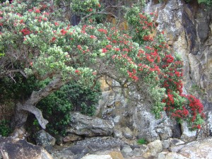 Wahrzeichen dieser Halbinsel östlich von Auckland ist ein Baum Namens Pohutukawa. Dieser Baum wächst entlang der Küstenlinie und blüht zur Weihnachtszeit in voller Pracht. Wegen dem relativ schlechten Frühling waren die meisten Bäume leider noch nicht in voller Blust, doch konnten wir doch schon erahnen, wie schön diese Gegend vielleicht eine oder zwei Wochen später sein wird. Die Coromandel-Peninsula ist zwar nicht der einzige Ort, wo der Pohutukawa wächst, doch hat es hier unzählige Exemplare.