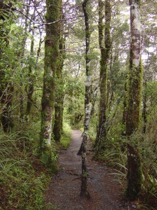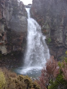 Unser Alternativ-Programm für die Zeit, als es nicht mehr regnete, war eine zweistündige Rundwanderung zu den Taranaki Falls. Dafür startet man vom Whakapapa Village (wo sich auch das Besucherzentrum des DOC befindet) in Richtung der Tama Lakes. Die Wanderung führt durch Buschwälder und zweigt schliesslich zu den Fällen ab. Es lohnt sich, auf dem Weg noch ein bisschen weiter zu gehen (zirka eine halbe Stunde), um die Krater bei den Tama Lakes aus der Entfernung zu sehen. Bei guter Witterung wird man ausserdem während dem ganzen Hinweg den Mt. Tongariro sehen. Der Rückweg kann auf einem anderen Pfad in Angriff genommen werden, der unterhalb der Fälle startet.
