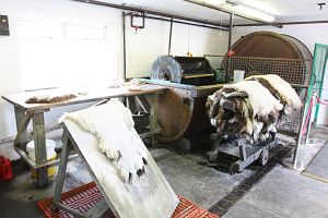 SteinAm Nachmittag besuchten wir noch eine Schafgerberei in Stein, unweit von unserem B&B. Hier wird durch die Besitzerin erklärt, wie die Herstellung von Leder und Fellprodukten funktioniert. Sehr begeistert hat uns auch das Verkaufslokal im oberen Stock, wo wunderschöne Exemplare von Teppichen und Matten gezeigt werden, alle aus feinstem Schafsfell hergestellt. Am liebsten hätten wir einen solchen Teppich mitgenommen, aber das lag nicht nur wegen der Grösse und dem Gewicht nicht drin. |
