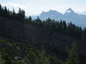 Abbruchkante, im Hintergrund Kleiner und Grosser Mythen