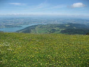 Blumenwiese auf dem Gnipen, der Zugersee im Hintergrund