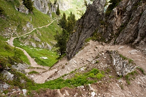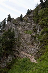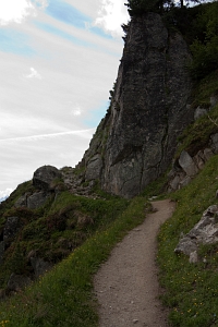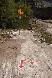 Richtig streng wird der Wanderweg erst direkt unterhalb des Grates, wo man das Ende des Aufstiegs vermutet. Hier wurde der Weg in einem Couloir in engen und steilen Serpentinen angelegt. Die Steigung ist enorm, man meint fast schon, pro Meter Horizontaldistanz einen an Höhe zu gewinnen. Oben angekommen sieht man die Kapelle und das Hotel Belalp, und die ganzen Touristen, die von der Belalp her gekommen sind, um einen Blick auf den Aletschgletscher zu erhaschen.