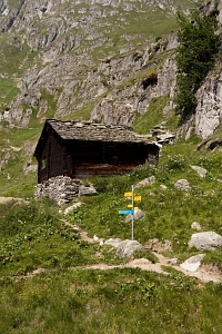 Nach der Überquerung der Hängebrücke beginnt der lange Aufstieg bis zum Hotel Belalp auf 2136m. Zu Beginn ist er aber gar nicht so steil, man geht von einer Alp zur nächsten und geniesst die umgebende Bergwelt. An einer Stelle überquerte direkt vor uns eine Gämse den Weg, sprang fast senkrecht einen Felsen hinunter und war Sekunden später etwas weiter vorne wieder auf unserer Höhe. Keine Ahnung, wie die das gemacht hat, aber sie schien sämtliche physikalischen Grenzen zu überwinden.