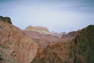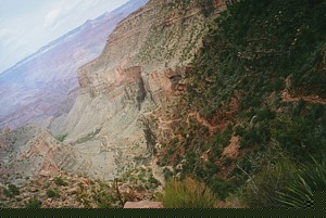 You may also stay the night in the Phantom Ranch on the bottom (reservation needed) or on the campground at Indians Garden. A shorter hike is from the Bright Angel Trailhead to the Plateau Point what I did in 1999. It took us five hours to go there and back to the trailhead again (and was a little warmer). |